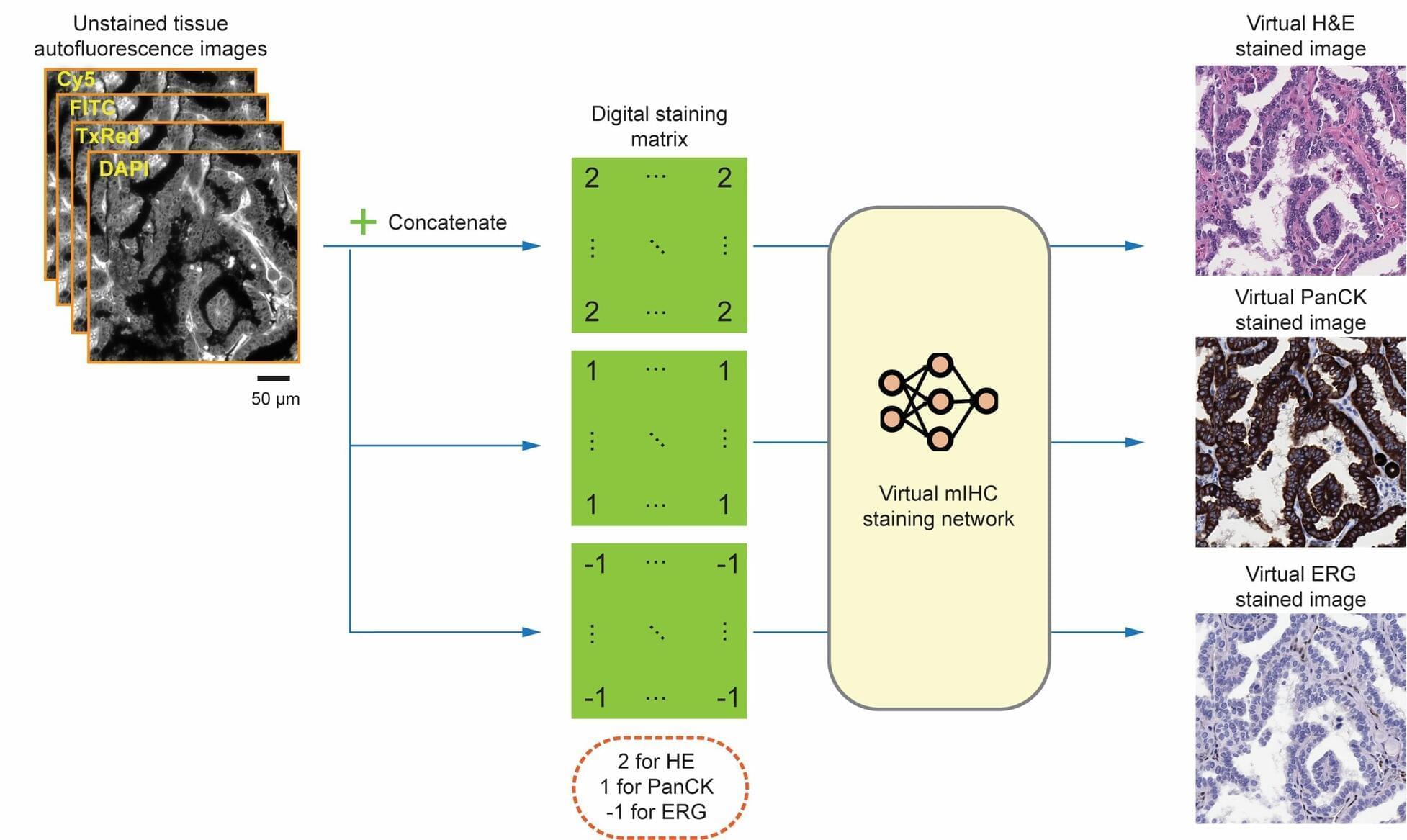 Researchers at the University of California, Los Angeles (UCLA), in collaboration with pathologists from Hadassah Hebrew University Medical Center and the University of Southern California, have developed a deep learning–based method that can digitally generate multiple immunohistochemical stains from a single, unstained tissue section.