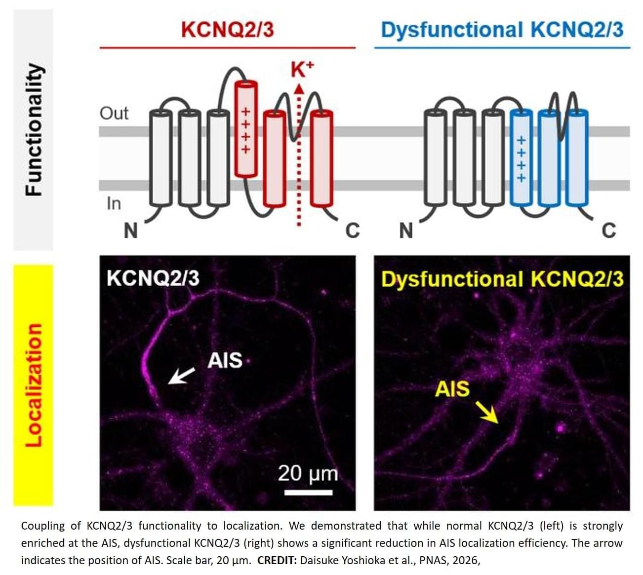 For KCNQ2/3 channels to work properly in the brain, they must have full functionality and be located in the correct cellular region – specifically the axon initial segment (AIS), the site in neurons where electric signals are first triggered, controlling nerve cell activity. This led the research team to wonder: does the functionality of KCNQ2/3 channels affect their cellular localization, or are the two not linked at all?